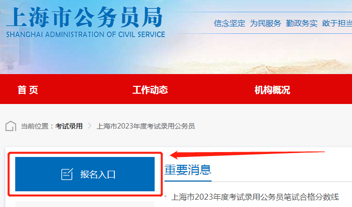 2023年上海公務(wù)員考試職位報(bào)名于2月20日9:00至2月24日18:00參加本市統(tǒng)一組織的第一輪網(wǎng)上職位報(bào)名,并接受招錄單位的資格審查。由于報(bào)名持續(xù)時(shí)間較短,請(qǐng)考生們抓緊時(shí)間登錄以下入口進(jìn)行報(bào)名!