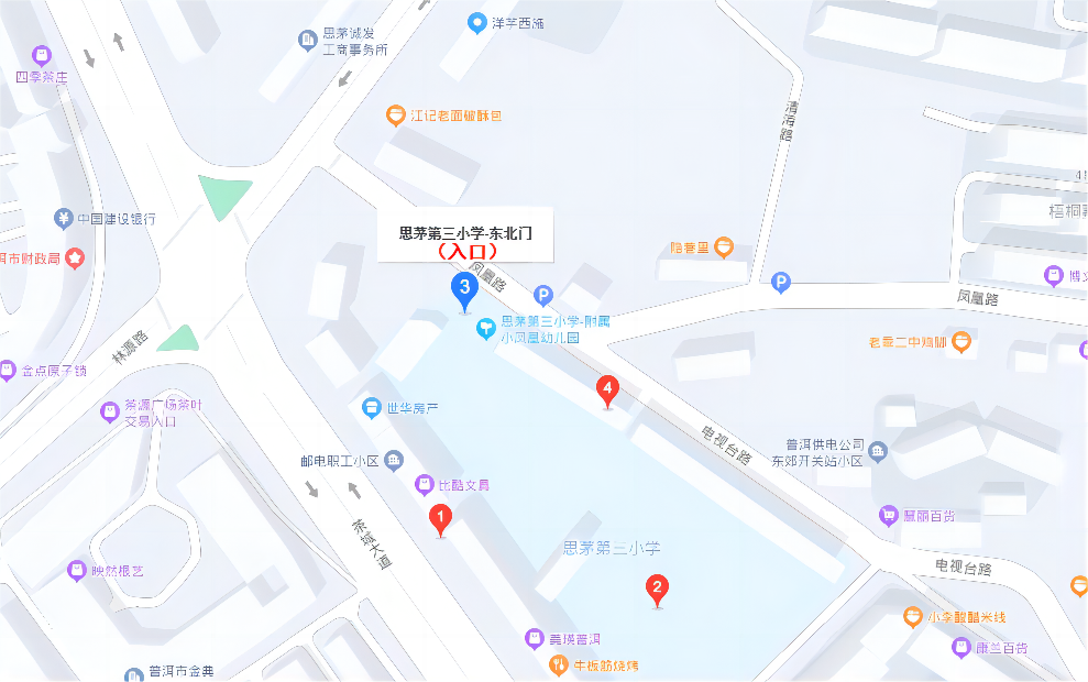 4.思茅第三小學(xué),地址:普洱市思茅區(qū)鳳凰路7號