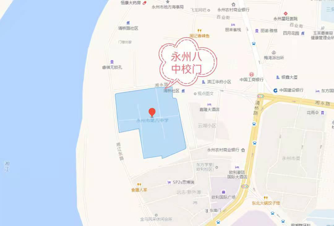 6.永州市第八中學(xué)考點(diǎn)(冷水灘區(qū)湘永路2號(hào),嘉隆大酒店旁——湘永路永州八中大門進(jìn)入考點(diǎn)),周圍經(jīng)停公交車線路:8路、12路、14路、20路、24路等)
