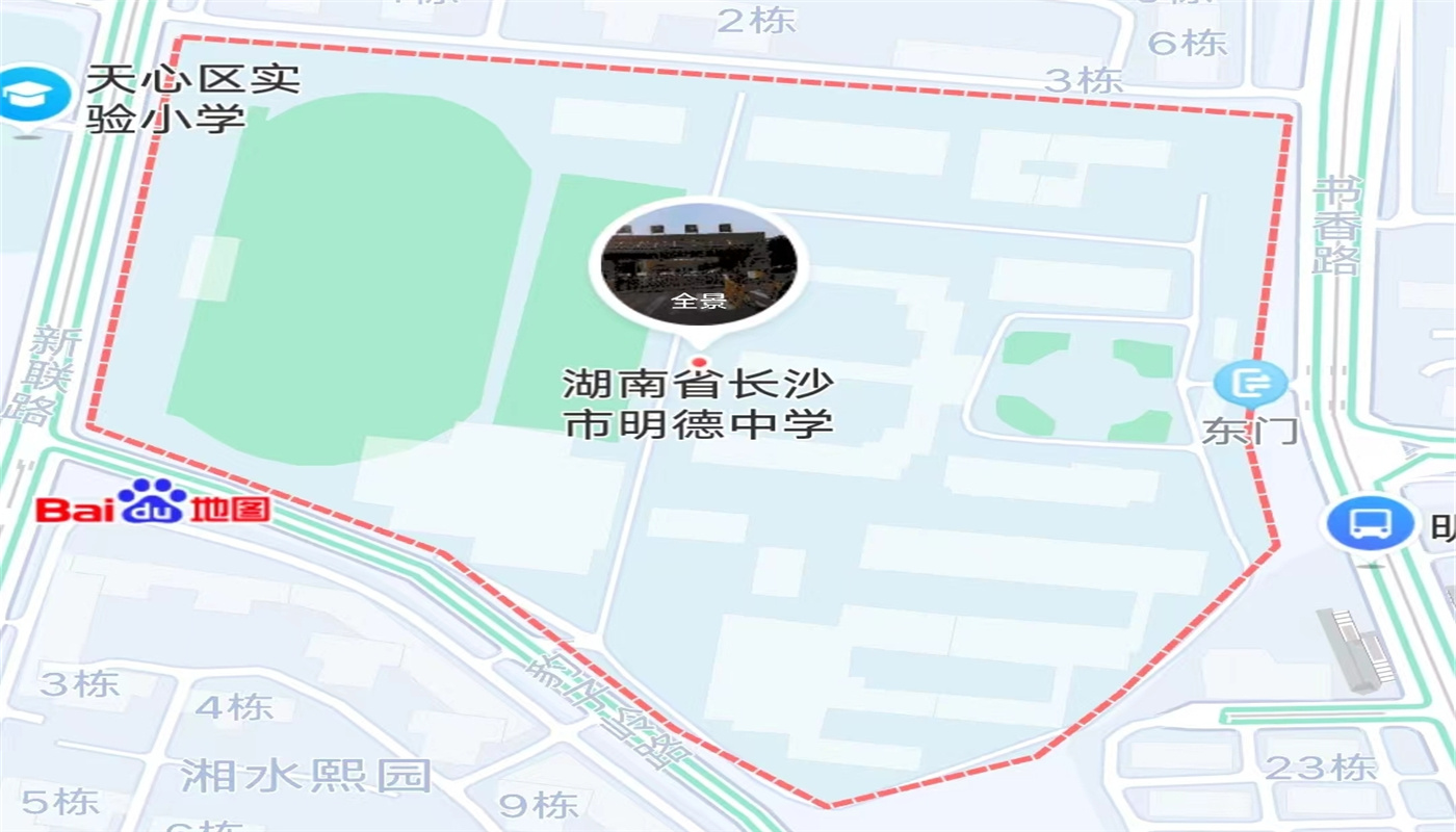 3、長沙市明德中學(長沙市天心區(qū)書香路448號-東門)