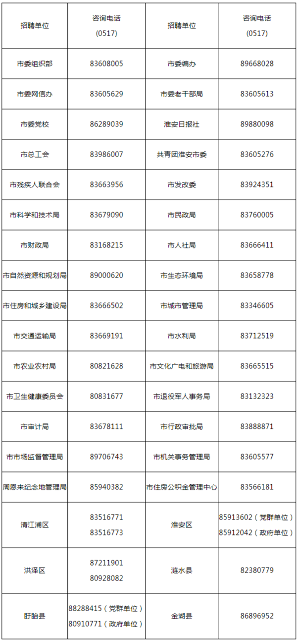 報名咨詢電話:各單位報名咨詢電話詳見《崗位表》。