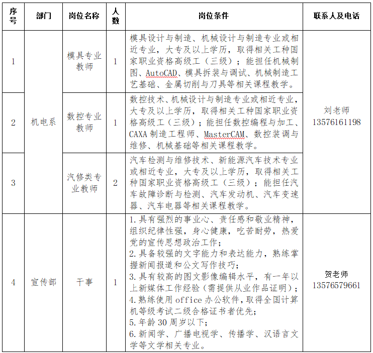 江西省輕工業(yè)高級技工學(xué)校創(chuàng)建于1978年,位于江西省宜春市袁州區(qū)環(huán)城南路199號,是由省教育廳直屬的一所公辦中等職業(yè)學(xué)校、全國重點(diǎn)技工學(xué)校。因?qū)W校發(fā)展和教育教學(xué)需要,現(xiàn)面向社會招聘外聘專業(yè)教師4名,宣傳部干事1名。