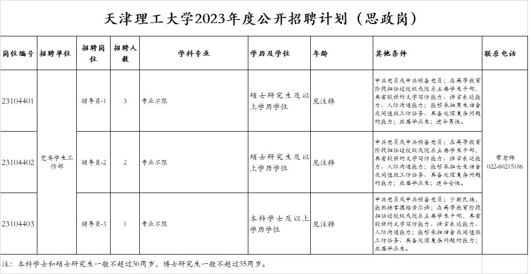 天津理工大學(xué)2023年度公開招聘方案(思政崗)