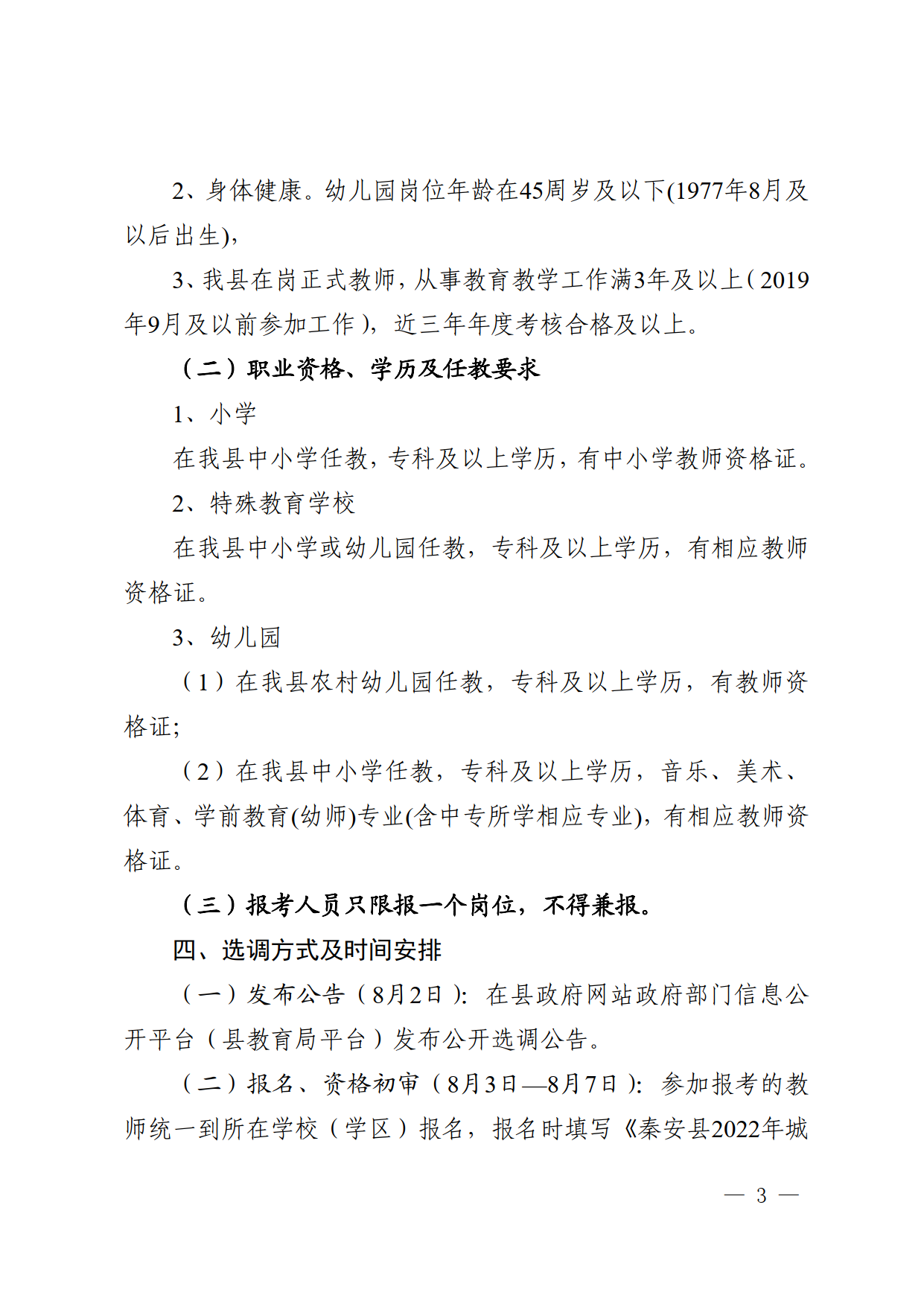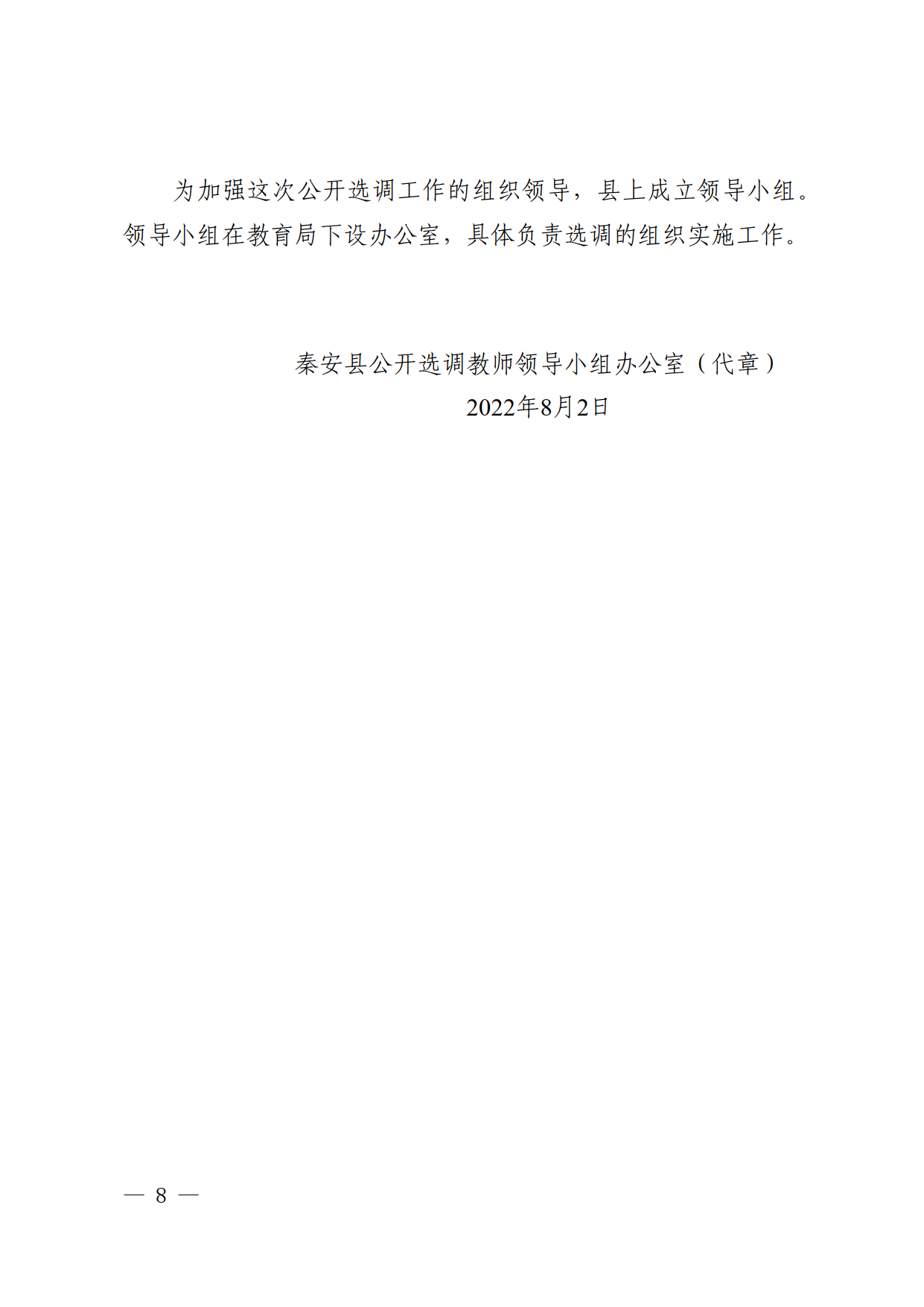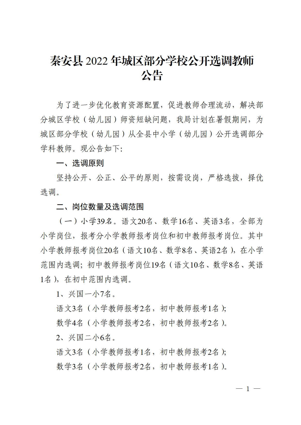 秦安縣2022年城區(qū)部分學校公開選調教師公告
