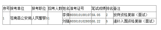 2023年浙江公務(wù)員考試溫州蒼南縣遞補(bǔ)資格復(fù)審人員名單(2)