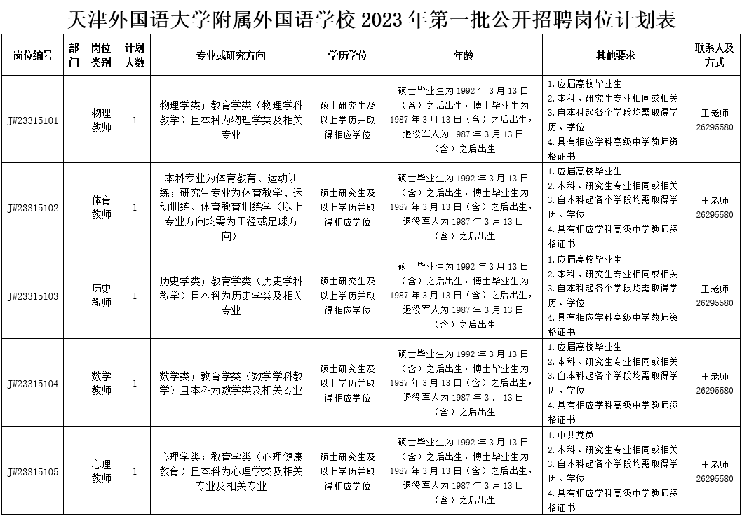 天津外國語大學(xué)附屬外國語學(xué)校2023年公開招聘實施方案