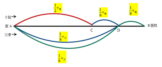 小趙騎車(chē)去醫(yī)院看病,父親在發(fā)現(xiàn)小趙沒(méi)有帶醫(yī)??〞r(shí)以60km/h的速度開(kāi)車(chē)追上小趙,把醫(yī)??ń唤o他并立即返回。小趙拿到醫(yī)??ê笥烛T了10分鐘到達(dá)醫(yī)院,小趙父親也同時(shí)到家。假如小趙從家到醫(yī)院一共用時(shí)50分鐘,則小趙的速度為多少km/h?( )(假定小趙及其父親全程都勻速行駛,忽略父子二人交接卡的時(shí)間)