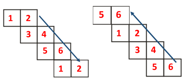 上圖中面1、2可以直接下臺階到達面5、6的下方,變成新的2-2-2式,上圖中面5、6可以直接上臺階到達面1、2的上方,變成新的2-2-2式。