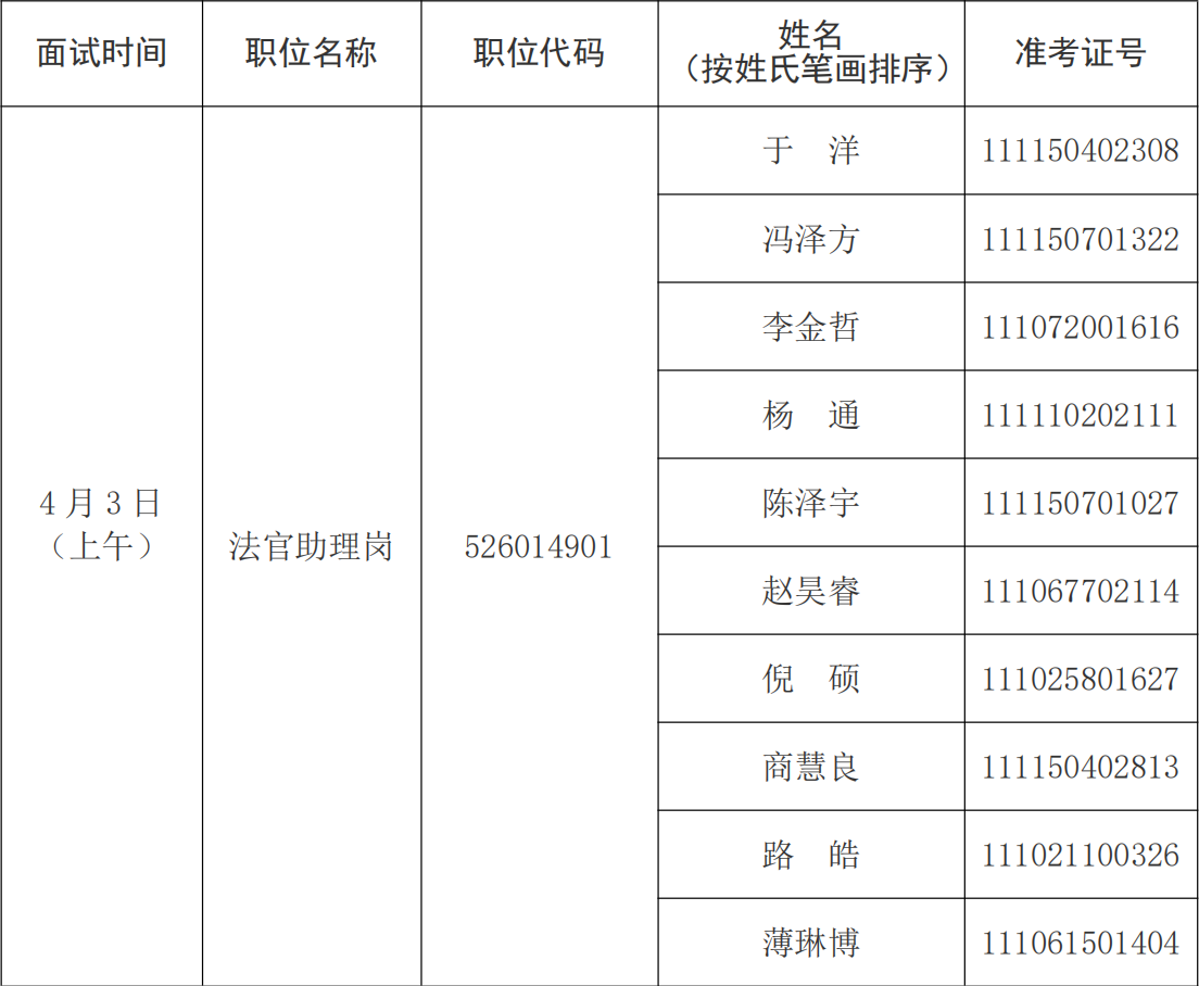 請(qǐng)考生按照面試時(shí)間安排,于本人面試當(dāng)天上午8:00或下午13:00前,到面試候考室北京市大興區(qū)人民法院C座三樓第二會(huì)議室報(bào)到,參加面試。需參加專(zhuān)業(yè)能力測(cè)試的考生,還應(yīng)在3月25日13:00前,到北京市大興區(qū)人民法院執(zhí)行指揮中心報(bào)到,參加專(zhuān)業(yè)能力測(cè)試。未按時(shí)報(bào)到的,視為自動(dòng)放棄。