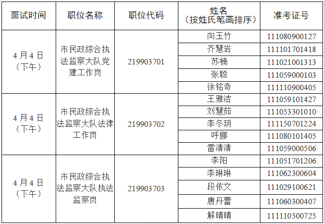 根據(jù)公務(wù)員法和公務(wù)員錄用有關(guān)規(guī)定,現(xiàn)就市委社會(huì)工委市民政局2023年度考試錄用公務(wù)員面試有關(guān)事宜通知如下: