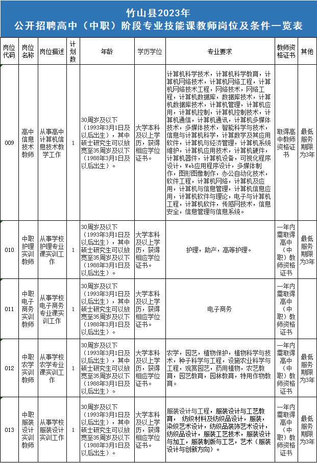 竹山縣2023年公開招聘高中階段學(xué)校教師公告