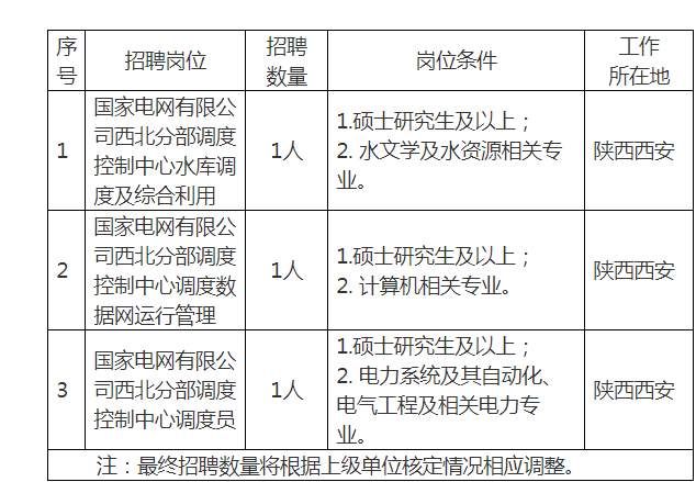 現(xiàn)將國(guó)家電網(wǎng)有限公司西北分部2023年第二批高校畢業(yè)生招聘有關(guān)事項(xiàng)通知如下: