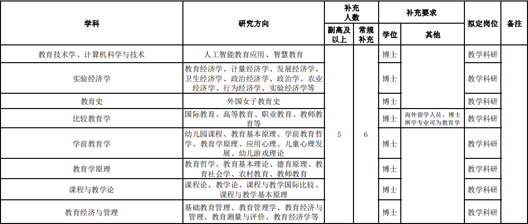 教育學部2023年教師招聘啟事