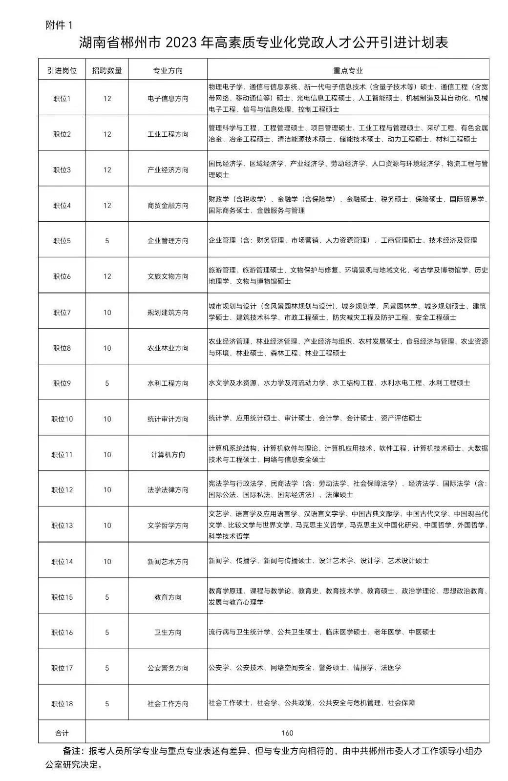 湖南省郴州市2023年高素質(zhì)專業(yè)化黨政人才公開引進(jìn)公告