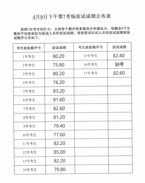 2023年山東威海市公務(wù)員考試面試成績(jī)(4月9日下午)