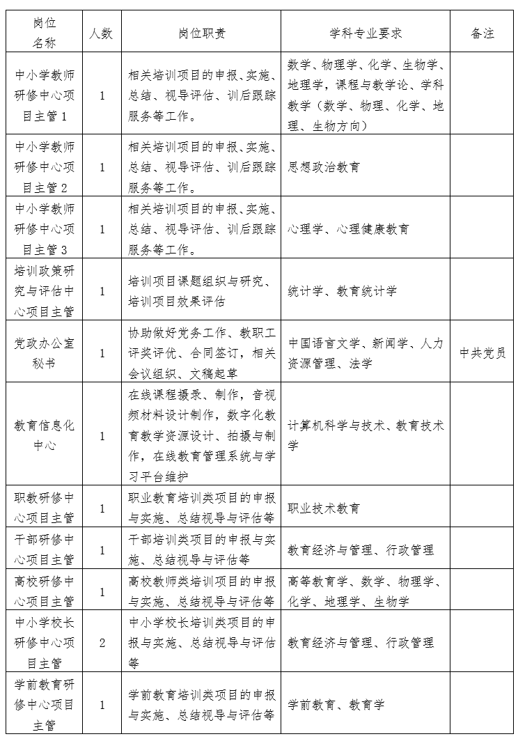 本次招聘崗位不占用學(xué)校事業(yè)編制,聘用人員與教師干部培訓(xùn)學(xué)院簽訂固定期限勞動合同。