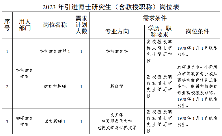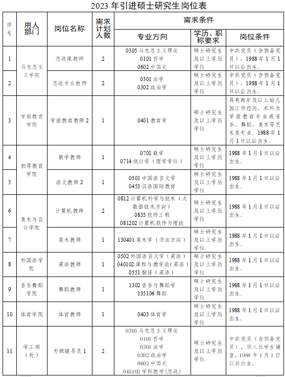 面向社會公開引進具有碩士研究生及以上學歷學位、高校教授專業(yè)技術資格的人才20名,引進崗位及數(shù)量見下表:
