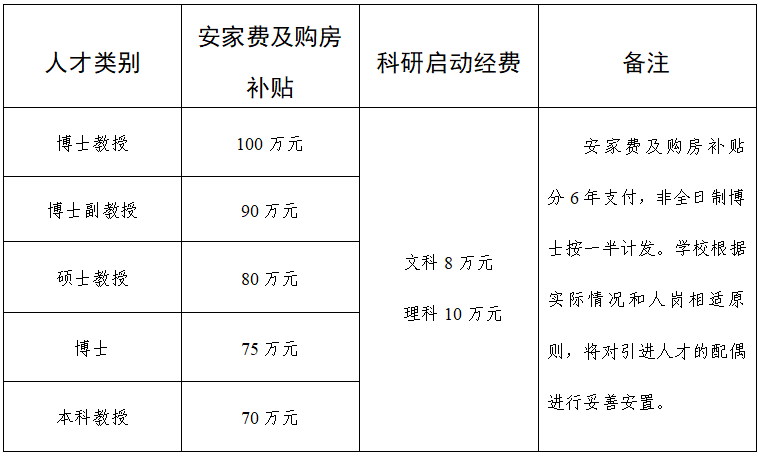 引進人才納入事業(yè)編制管理,享受國家規(guī)定的工資、福利待遇。擬引進的博士研究生、教授根據(jù)合同和考核結果享受如下待遇: