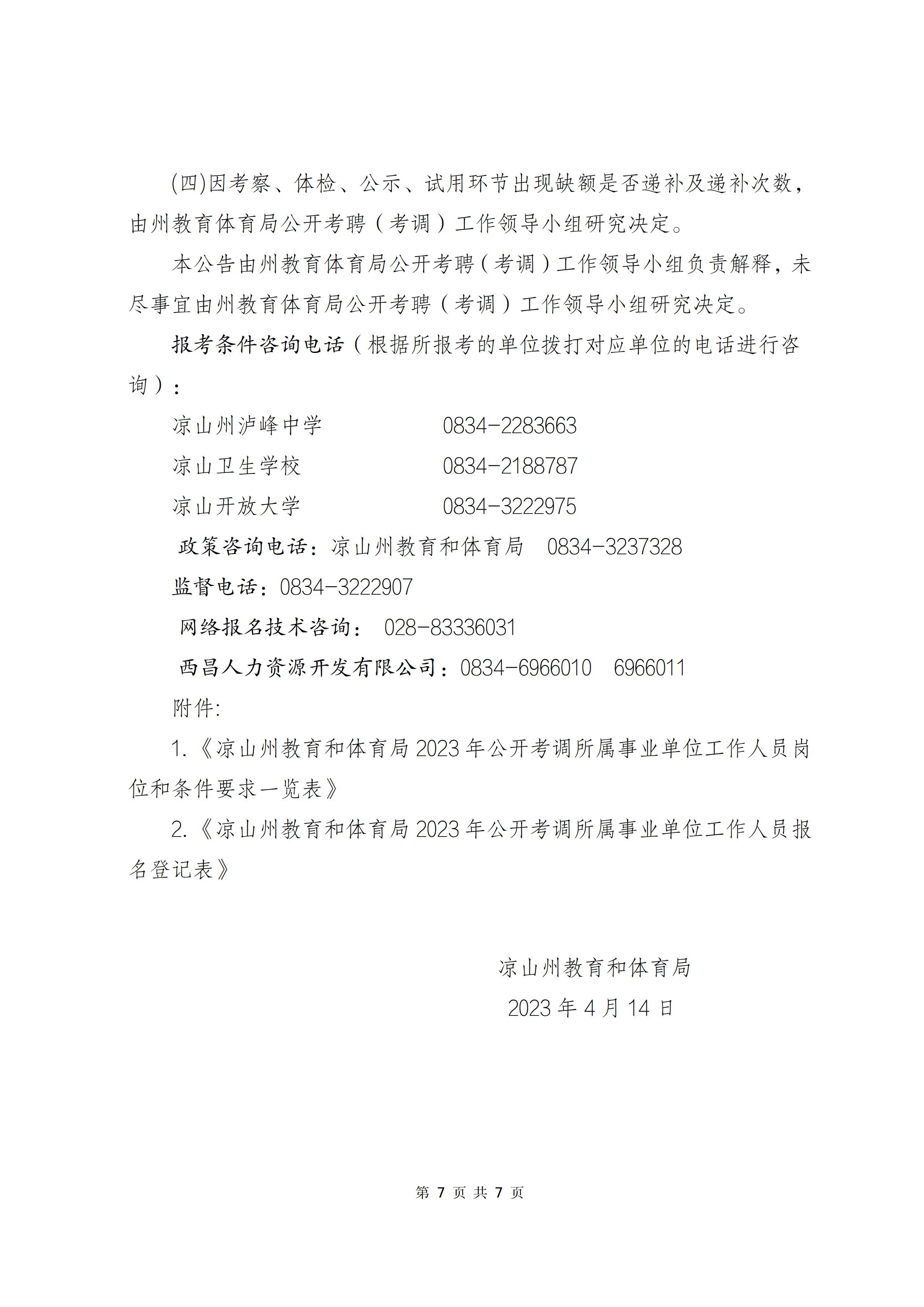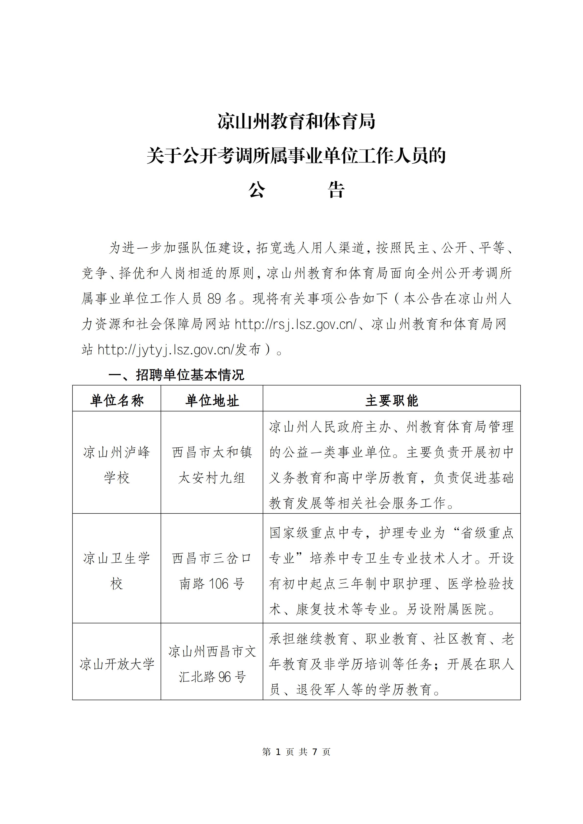 涼山州教育和體育局關(guān)于公開考調(diào)所屬事業(yè)單位工作人員的公告