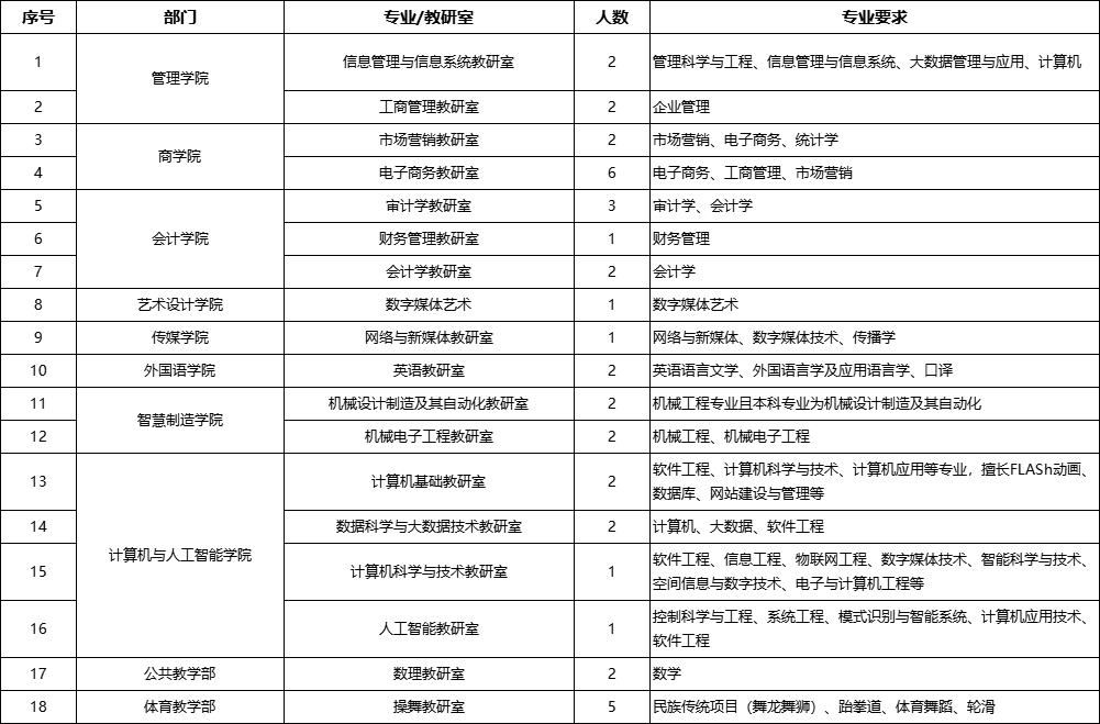 2.一般教師要求碩士研究生畢業(yè)并獲得碩士學(xué)位,本碩專(zhuān)業(yè)相同或相近;一直在高校從事教學(xué)工作并取得講師任職資格可適當(dāng)放寬;