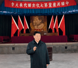 2022年10月27日,中共中央總書記、國(guó)家主席、中央軍委主席習(xí)近平帶領(lǐng)中共中央政治局常委李強(qiáng)、趙樂際、王滬寧、蔡奇、丁薛祥、李希,瞻仰延安革命紀(jì)念地。這是習(xí)近平在楊家?guī)X瞻仰中共七大會(huì)址。新華社記者燕雁/攝