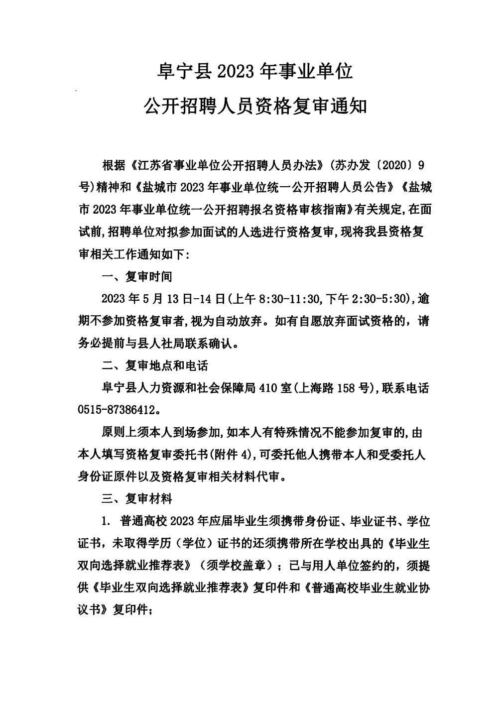 阜寧縣2023年事業(yè)單位公開招聘人員資格復(fù)審?fù)ㄖ?/strong>