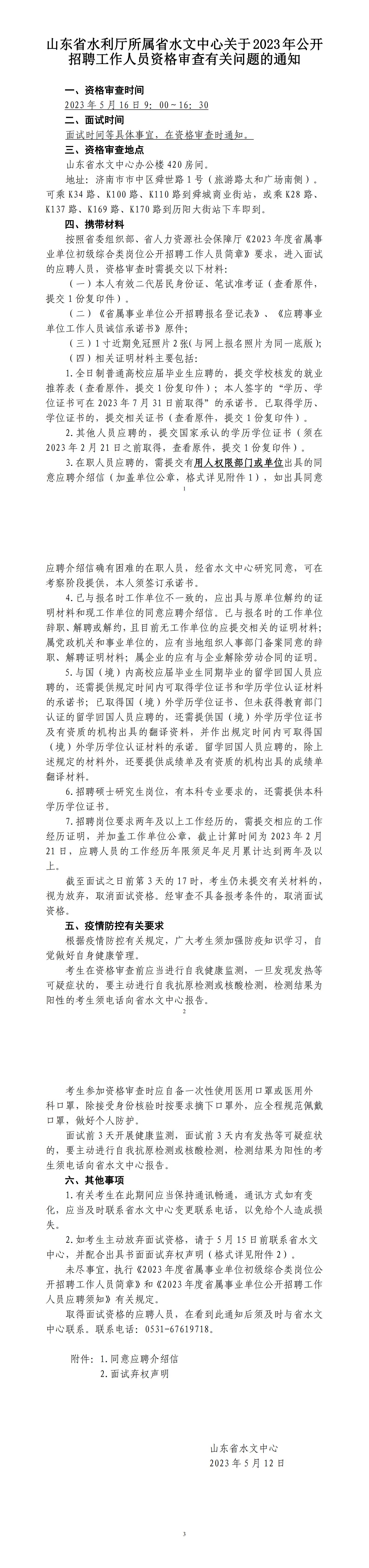 2023年山東省水文中心招聘資格審查有關(guān)問題通知