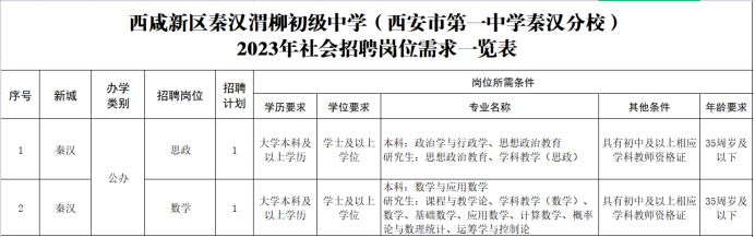 西咸新區(qū)秦漢渭柳初級中學(xué)2023年招聘公告