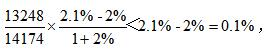 接下來(lái)由于14.4%-11.5%=2.9個(gè)百分點(diǎn),而1+14.4%>1,2.9個(gè)百分點(diǎn)除以一個(gè)大于1的數(shù)得到的結(jié)果必定小于2.9個(gè)百分點(diǎn),