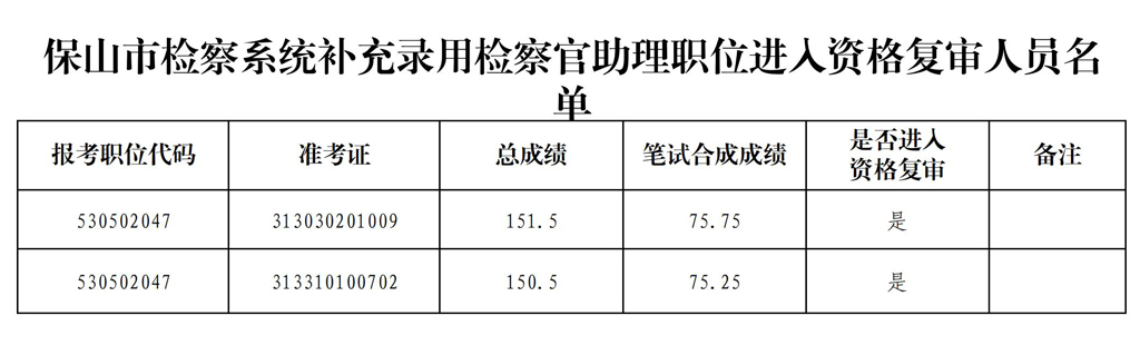 保山市檢察系統(tǒng)2023年度補充錄用檢察官助理職位公務(wù)員資格復(fù)審公告