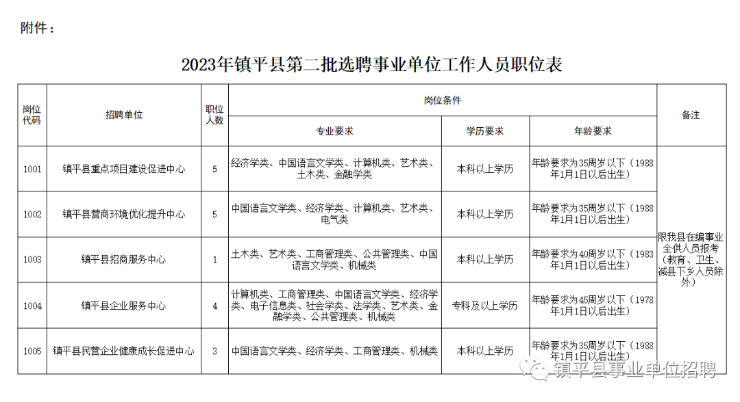 附:2023年鎮(zhèn)平縣第二批選聘事業(yè)單位工作人員職位表