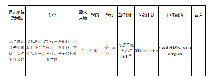 棗莊市網(wǎng)絡(luò)安全保障中心2023年引進(jìn)急需緊缺人才公告