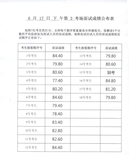 2023年山東威海市補(bǔ)錄公務(wù)員考試(含本土)面試成績(6月17日下午)