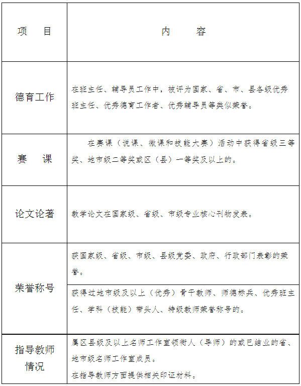 1.年齡38周歲及以下(1985年1月1日后出生),近5年(2018年1月1日以后)在選聘的學(xué)段學(xué)科賽課(說課、微課和技能大賽)活動(dòng)中獲得省級(jí)三等獎(jiǎng)、地市級(jí)二等獎(jiǎng)或區(qū)(縣)一等獎(jiǎng)及以上的;