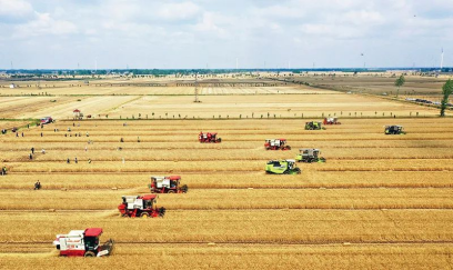 我國(guó)農(nóng)業(yè)綜合生產(chǎn)能力穩(wěn)步提升,糧食產(chǎn)量連續(xù)8年穩(wěn)定在1.3萬(wàn)億斤以上,谷物基本自給、口糧絕對(duì)安全,確保中國(guó)人的飯碗牢牢端在自己手中。圖為5月24日,河南省2023年小麥機(jī)收減損技能大比武活動(dòng)在南陽(yáng)市唐河縣舉行。新華社記者張浩然/攝