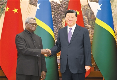 習(xí)近平指出,中國和所羅門群島是彼此值得信賴的好朋友、可以依靠的好兄弟。建交以來,兩國友好合作后來居上,走在了中國同太平洋島國關(guān)系前列,成為不同大小國家和發(fā)展中國家團結(jié)合作、攜手發(fā)展的典范。事實證明,中所建交順應(yīng)時代潮流,契合國際大勢,符合兩國人民根本利益,是正確選擇。中方愿同所方加強戰(zhàn)略溝通,深化各領(lǐng)域合作,推動兩國全面戰(zhàn)略伙伴關(guān)系行穩(wěn)致遠、好上加好,更好造福兩國人民。