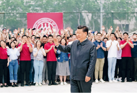2022年4月25日上午,中共中央總書記、國(guó)家主席、中央軍委主席習(xí)近平來(lái)到中國(guó)人民大學(xué)考察調(diào)研。這是習(xí)近平向師生們揮手致意。新華社記者謝環(huán)馳/攝