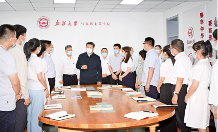 2022年7月12日至15日,中共中央總書記、國(guó)家主席、中央軍委主席習(xí)近平在新疆考察。這是12日下午,習(xí)近平在新疆大學(xué)鑄牢中華民族共同體意識(shí)研究基地,同師生親切交流。新華社記者李學(xué)仁/攝