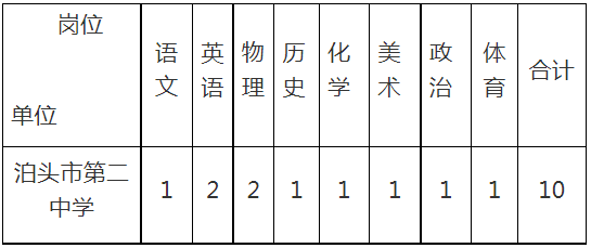 經(jīng)市政府批準,泊頭市第二中學公開招聘教師10名。