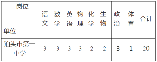 經(jīng)市政府批準(zhǔn),泊頭市第一中學(xué)公開招聘教師20名。
