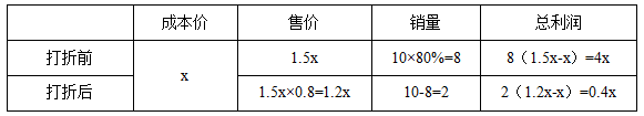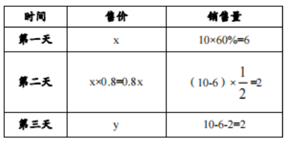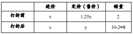 【答案】C【解析】設(shè)進價為x,銷量為10,打了y折。梳理題意列表如下: