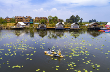游人在滇池南岸晉寧區(qū)上蒜鎮(zhèn)小漁村劃船休閑(2023年4月30日攝,無人機照片)。新華社記者陳欣波攝