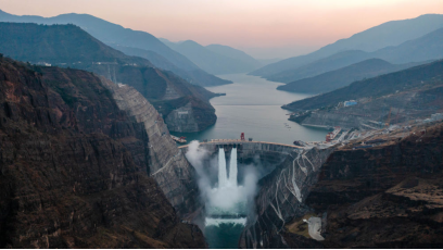 白鶴灘水電站一景(2022年12月19日攝,無人機照片)。新華社記者胡超攝