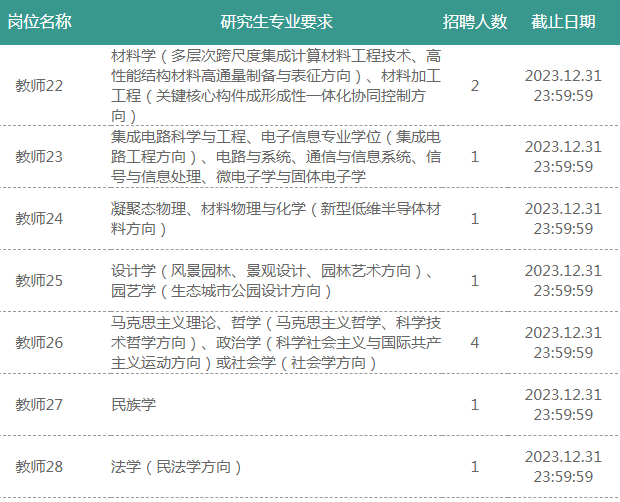 報名時間:面向博士招聘的崗位為長期招聘崗位,自簡章發(fā)布之日起7個工作日后,學(xué)校根據(jù)崗位報名情況,適時啟動面試、考察、體檢程序,崗位招滿即止,未招滿的崗位報名有效期至2023年12月31日。