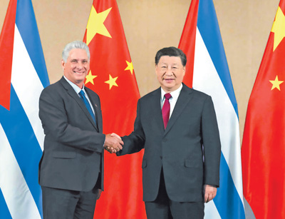 迪亞斯—卡內爾表示,我去年11月對中國進行成功國事訪問,雙方正在認真落實我們達成的重要共識。古中關系目前正處于歷史最高水平。古巴人民十分欽佩習近平主席,衷心感謝中國給予古巴正義事業(yè)的理解和寶貴支持。古方堅定支持習近平主席提出的全球發(fā)展倡議、全球安全倡議、全球文明倡議,愿同中方深化共建“一帶一路”合作,構建古中命運共同體,在建設各自特色的社會主義道路上攜手前行。古方愿同中方密切合作,推動“77國集團和中國”峰會取得成功。