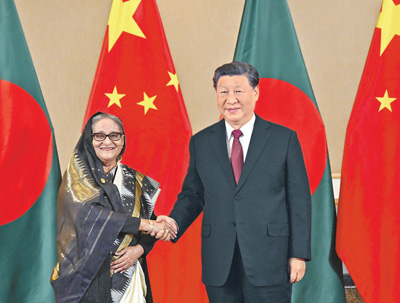 習(xí)近平指出,中國和孟加拉國傳統(tǒng)友好。2016年我們將中孟關(guān)系提升為戰(zhàn)略合作伙伴關(guān)系,為兩國深化合作指明了方向。當(dāng)前,中孟兩國都處在各自發(fā)展振興的關(guān)鍵階段。中方愿同孟方加強(qiáng)發(fā)展戰(zhàn)略對接,深化各領(lǐng)域務(wù)實(shí)合作,推動中孟戰(zhàn)略合作伙伴關(guān)系邁上新臺階,給兩國人民帶來更多福祉。