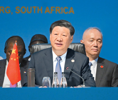 當(dāng)?shù)貢r(shí)間8月24日上午,國(guó)家主席習(xí)近平在約翰內(nèi)斯堡出席金磚國(guó)家同非洲國(guó)家及其他新興市場(chǎng)和發(fā)展中國(guó)家領(lǐng)導(dǎo)人對(duì)話會(huì)。習(xí)近平發(fā)表題為《勠力同心攜手同行邁向發(fā)展共同體》的講話。新華社記者 李學(xué)仁攝