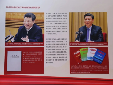 2022年8月28日,新時(shí)代中國(guó)網(wǎng)絡(luò)文明建設(shè)成果展在天津國(guó)家會(huì)展中心正式亮相。圖為習(xí)近平總書記關(guān)于網(wǎng)絡(luò)強(qiáng)國(guó)的重要思想展板。