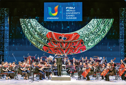 圖為2023年7月30日,音樂家在為參加成都大運會的各代表團成員演奏《瑤族舞曲》。新華社記者 沈伯韓/攝