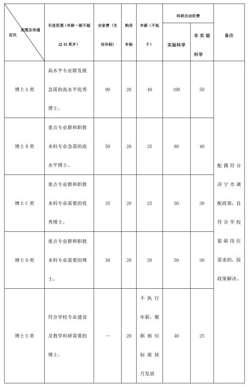 1.學(xué)院在安家費(fèi)(生活補(bǔ)貼)、科研啟動經(jīng)費(fèi)等方面提供如下待遇:(人民幣,單位:萬元)